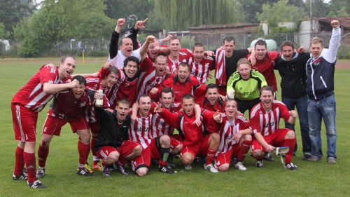 Die 1. Mannschaft sichert sich mit einem 5:1 Erfolg bei FC Thüringen Jena II die Meisterschaft 2011 / 2012 und den Aufstieg in die Kreisoberliga.