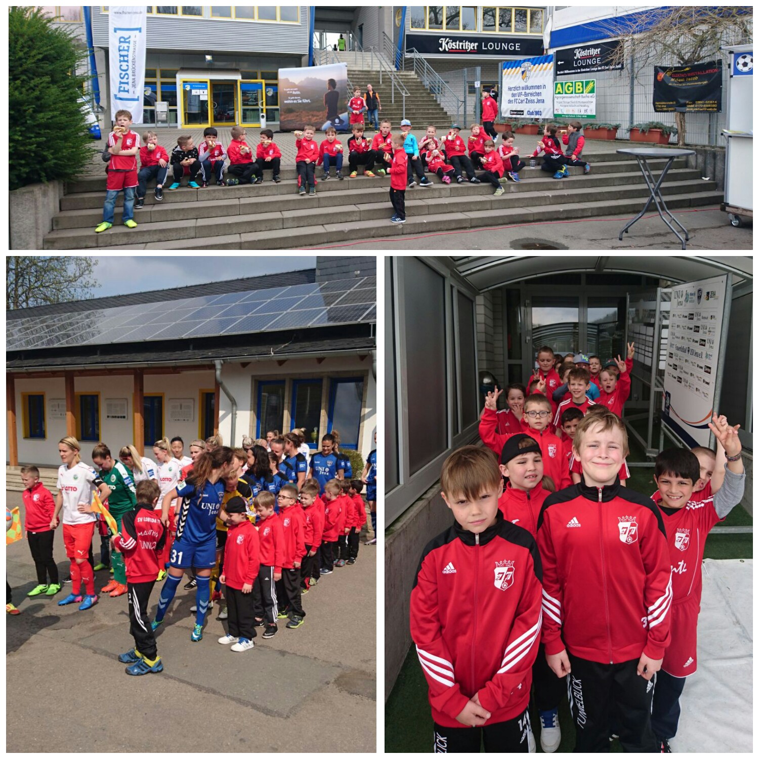 Unsere G-Junioren hatten die Möglichkeit Bundesliga-Luft zu schnuppern. Denn in der Partie des heimischen USV Jena gegen den 1.FFC Frankfurt in der Allianz Frauen-Bundesliga durften sie die Spielerinnen auf das Ernst-Abbe-Sportfeld führen.
